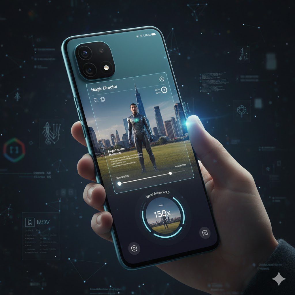 The Camera (The AI Magic): The hardware is impressive, but the software is mind-blowing. The new “Magic Director” feature allows you to record a video and later change the lighting, background, or even the clothes of the person in the video using on-device generative AI. The 10x Optical Periscope lens combined with Zoom Enhance 2.0 provides crisp shots even at 150x digital zoom.